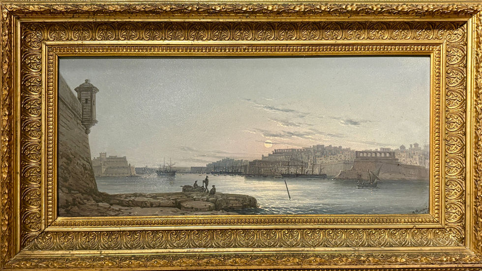 Dipinto ad olio su tavoletta del pittore Giacinto Gianni (Napoli 1837 - Napoli 1948), raffigurante “Veduta del porto de La Valletta” - Malta.